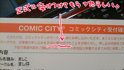 って所まで書いてなんとなくポストを覗きに行ったら受付確認ハガキ届いてた。