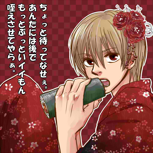 あ、総悟は土方さんが梅好きだから梅柄の着物着てるんですよ!意外と可愛いとこあんじゃねーか・・なんですよ。まぁ、騙されてるけど