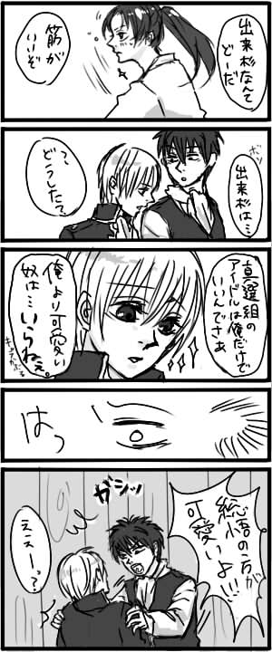 ついでに注釈するとうちの総悟別に総受けとかじゃ無いですよ。沖土の総悟総モテってすんごいイイ匂いがするけど(ハアハア)でもうちは違います。