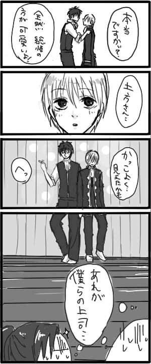 総悟がガッチリ隊服なのと土方さんが薄着ベストなのは地味なこだわりです。
