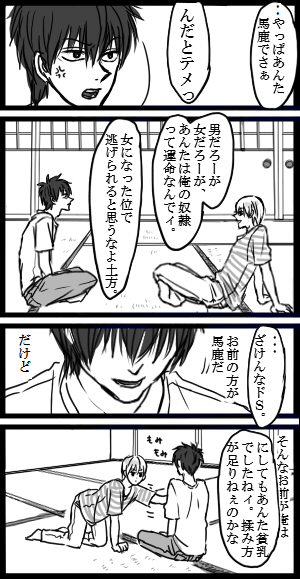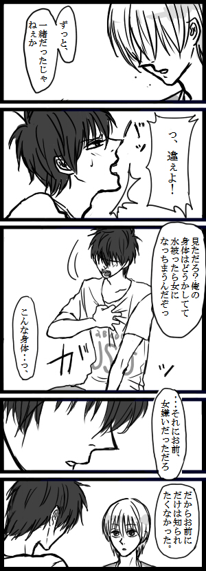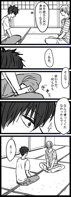 実は私女体化って苦手でして読んだことあまりなかったんです(←白状)で今回の漫画をかくのに当たって初めてらんまを読ませていだいて〈1/2ってそうゆう意味か!(はっ感心してる場合じゃないっ汗)〉と思いました実は実は(笑)