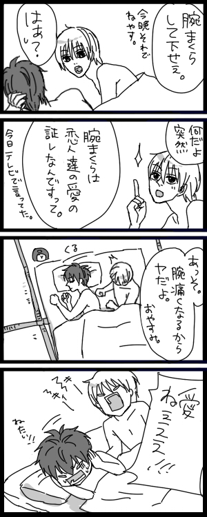 なんか人様が書いた腕枕沖土はすげえ萌えるんだけど自分で描くとなんかなあ・・って感じです。