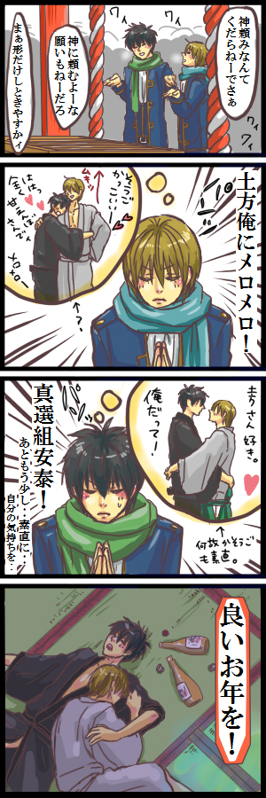 完全に堕とされたのは多分2008年の10月くらいだったと思います。生まれて初めて同人誌を買いました。通販で沖土アンソロジーを。正直去年の今頃は「私の沖土愛は絶対沖土プチまで持たないだろうな~残念だな~」とか思ってました。自他共に認める3日坊主、いや3日も持たないですよバイトなんか一日でやめてましたから