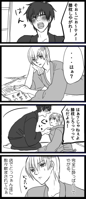 いつもは総悟ばっかり甘ったれてるので時々その反動で土方さんの甘ったれ話も描きたくなりますがやっぱり中々ねぇ・・日頃甘えられない分酔った時には盛大に甘えてもらいましょう!!