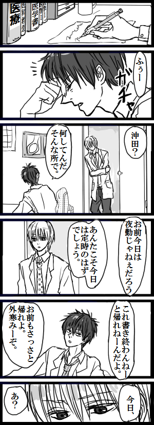 すみませんなんか仮にこの人達にスーツ着せたとしても全く支障のない感じ、つまり医者設定をビックリするほど生かせてなくてorz