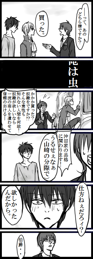 あの本当にこれでも良くなったほうで最初のプロットでは完全に沖田と奴隷商人が主役みたいな感じでそれじゃあまりにも酷い!と思い全部描きなおした・・それが、これ、ですorz雪崩