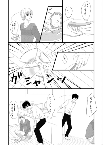 というわけで画像は節電中で日が暮れたら電気は豆電球までしかつけないようにしてるから明るいうちに必死で描いた沖土です! ちなみにちょんちょんやってるのは総悟の手です